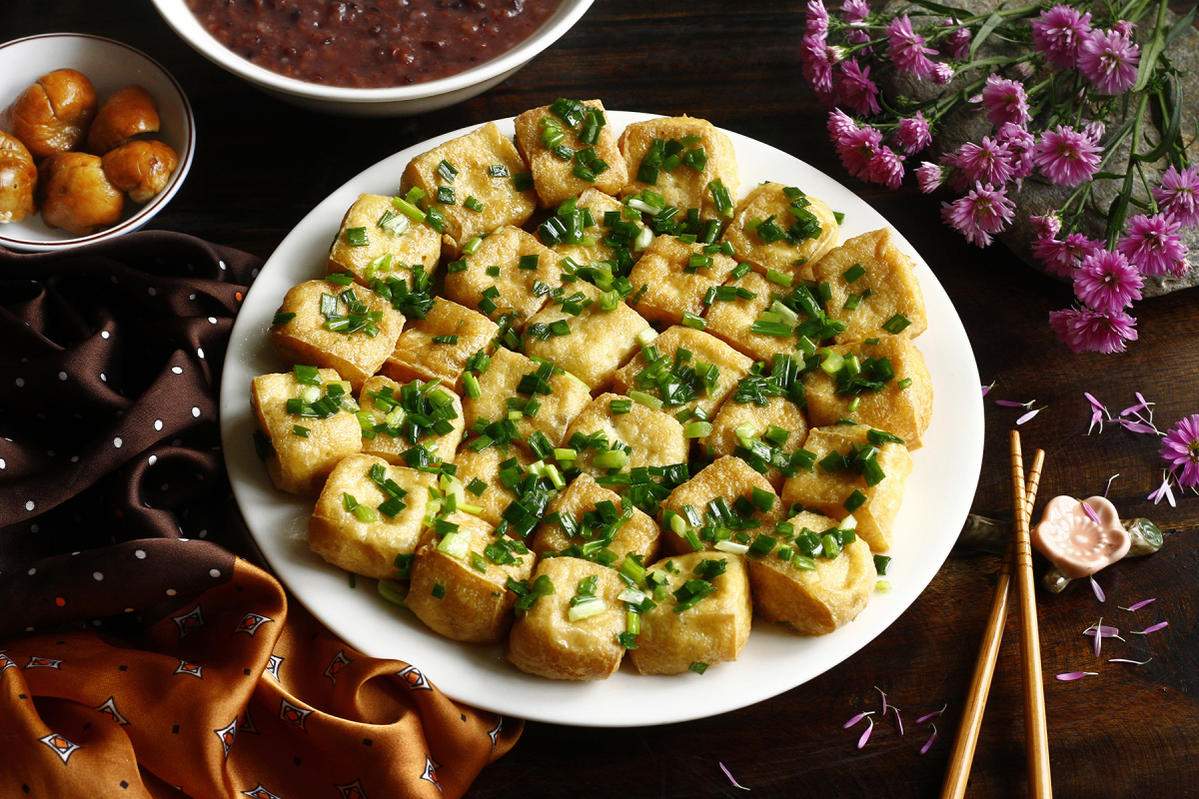 Đậu phụ theo Đông y vốn mang tính hàn còn hành hoa vị cay, tính bình giúp cân bằng vị giác.