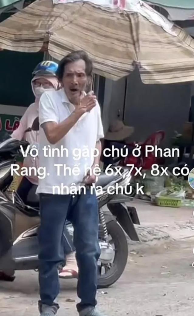 Hình ảnh nghệ sĩ Thương Tín lê từng bước khó khăn trên đường phố, biểu cảm thất thần đang lan truyền trên các trang mạng xã hội.