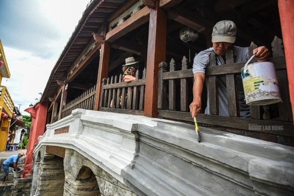 Ngày 30-7, đơn vị thực hiện dự án tu bổ di tích Chùa Cầu đã tiến hành tô quét một lớp vôi màu nhụ lên phần thành cầu để di tích trở nên sẫm màu hơn, vơi đi cảm giác tươi mới hơn so với trước đó.