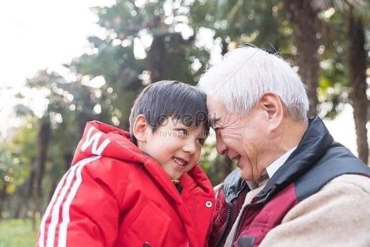 " Ông nhắm mắt đi" chợt cháu nội ông nói và cười khúc khích.