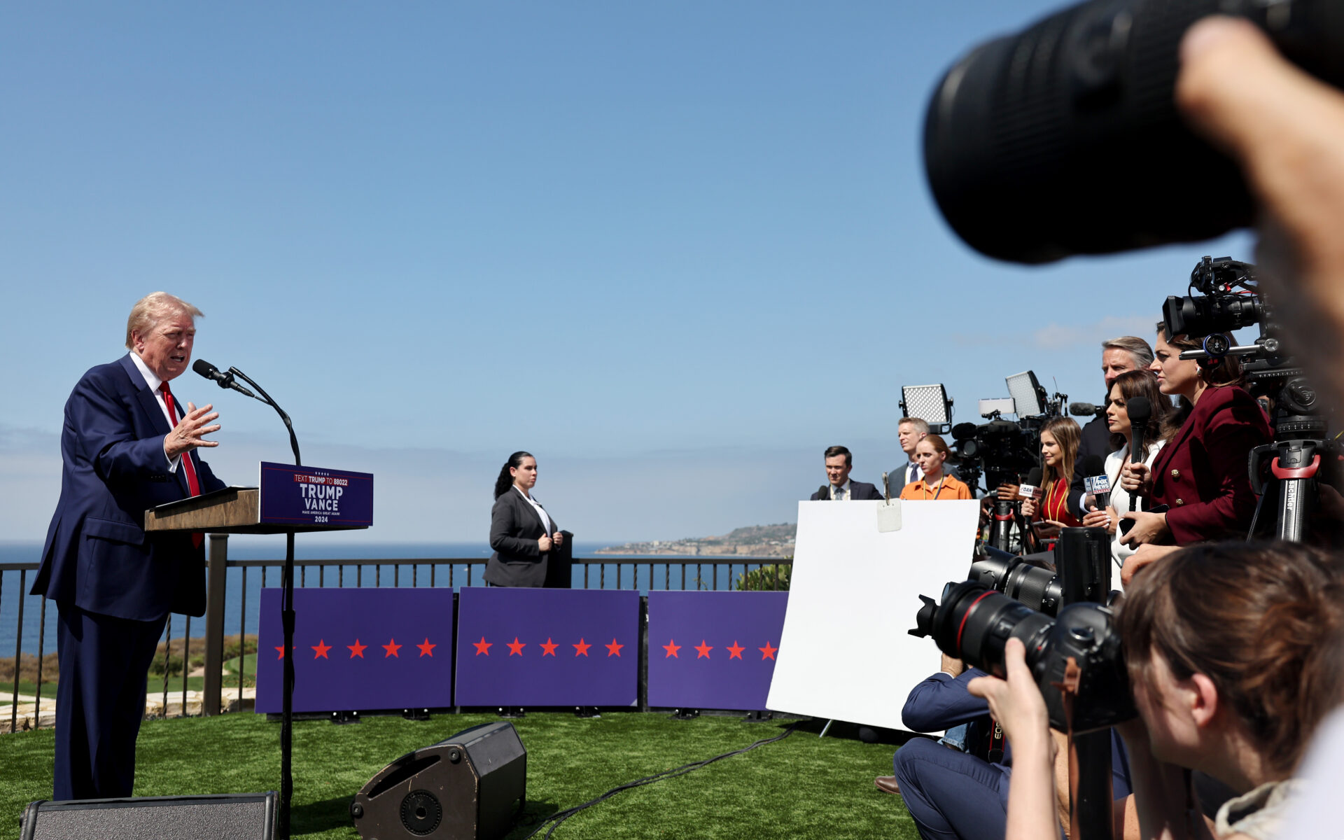Ứng cử viên tổng thống Đảng Cộng Hòa, cựu Tổng Thống Donald Trump họp báo tại Trump National Golf Club Los Angeles ngày 13 Tháng Chín, 2024 ở Rancho Palos Verdes, California (Hình: Mario Tama/Getty Images)