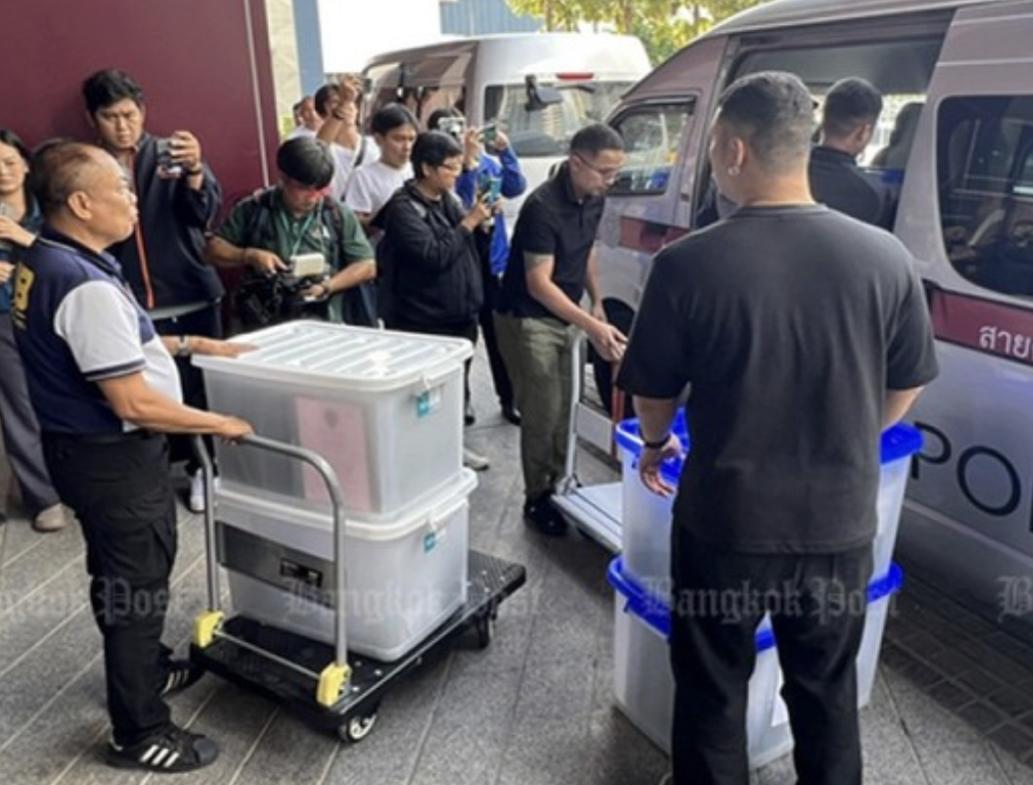 Cảnh sát chuyển 18 thùng hồ sơ đến Cục Điều tra Đặc biệt. Ảnh: Bangkok Post.