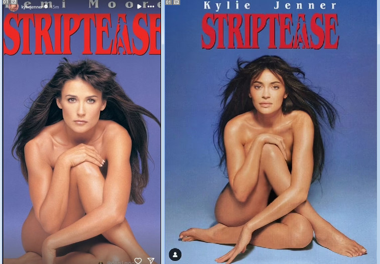 Kylie Jenner thực hiện loạt ảnh theo 2 phong cách khác nhau để tái hiện nhân vật Erin Grant nhằm tri ân bộ phim. Ngay khi đăng tải trên Instagram có gần 400 triệu người theo dõi, bức hình Kylie Jenner khỏa thân hoàn toàn để tái hiện poster phim Striptease nhanh chóng đạt triệu lượt thích.