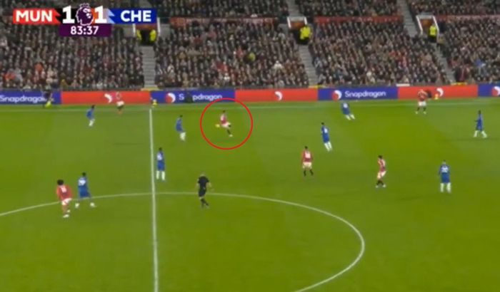 Phút 83 trên sân Old Trafford, tiền vệ người Bồ Đào Nha đá nối sau đường chuyền của Matthijs de Ligt, đưa bóng đến đúng tầm băng lên của Joshua Zirkzee. Tuy nhiên, chân sút người Hà Lan không tung ra cú dứt điểm mà chờ đồng đội lên phối hợp, qua đó bỏ qua cơ hội ghi bàn rõ rệt của MU.
