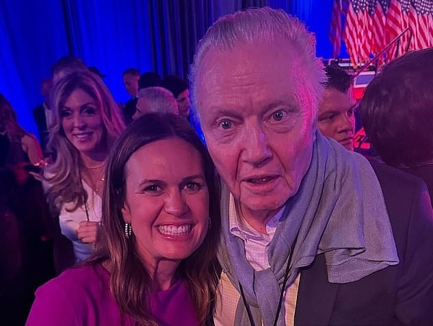 Diễn viên Jon Voight (phải) và thống đốc bang Arkansas - bà Sarah Huckabee Sanders - tại tiệc mừng do ông Donald Trump tổ chức ở dinh thự Mar-a-Lago, Florida, hôm 5/11. Ảnh: Instagram Sarah Huckabee Sanders