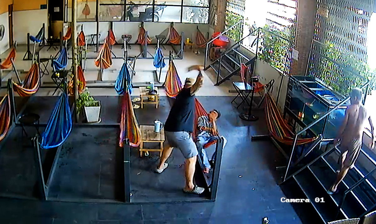 Camera an ninh quán cà phê ghi hình Võ Đức Duy dùng dao tấn công bạn nhậu. Video: Người dân cung cấp