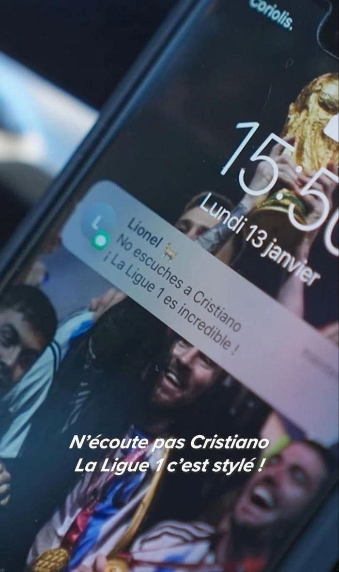Trong đoạn video công bố, tiền vệ 23 tuổi người Argentina nhận được tin nhắn từ một người tên "Lionel" với nội dung: “Đừng nghe lời Cristiano, Ligue 1 thật tuyệt vời".