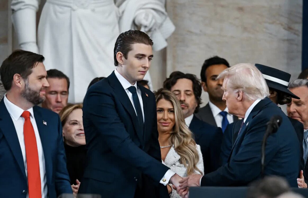 Barron nổi bật với chiều cao hơn 2 mét, cao hơn cả cha mẹ mình trong lễ nhậm chức lần thứ hai của cha mình, Donald Trump, vào thứ Hai, ngày 20 tháng 1 năm 2025