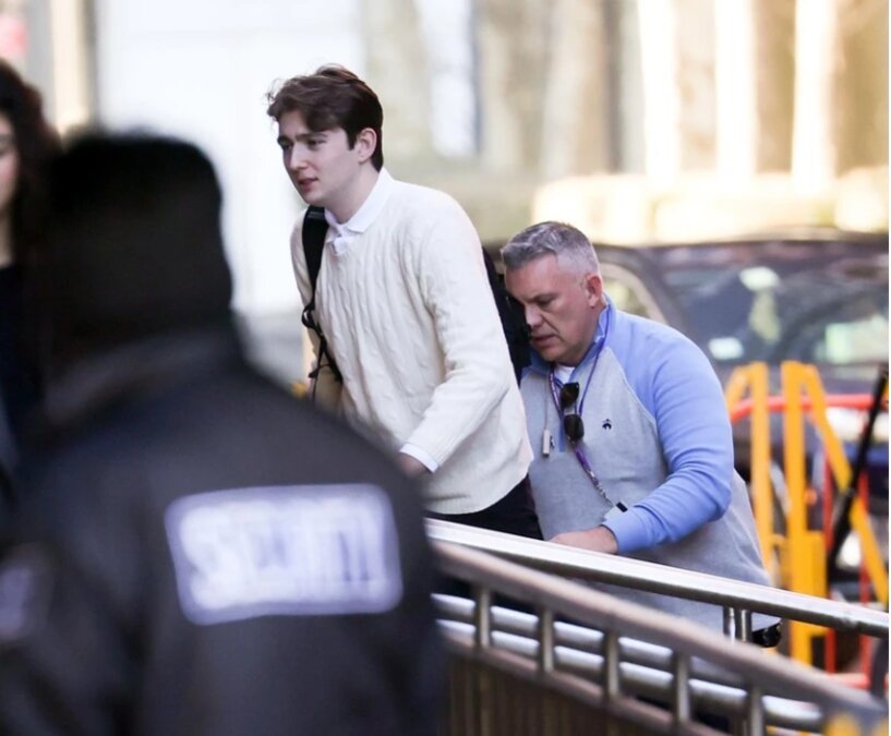 Barron Trump được hộ tống đến trường. Ảnh: Probe-Media.com/NY Post.