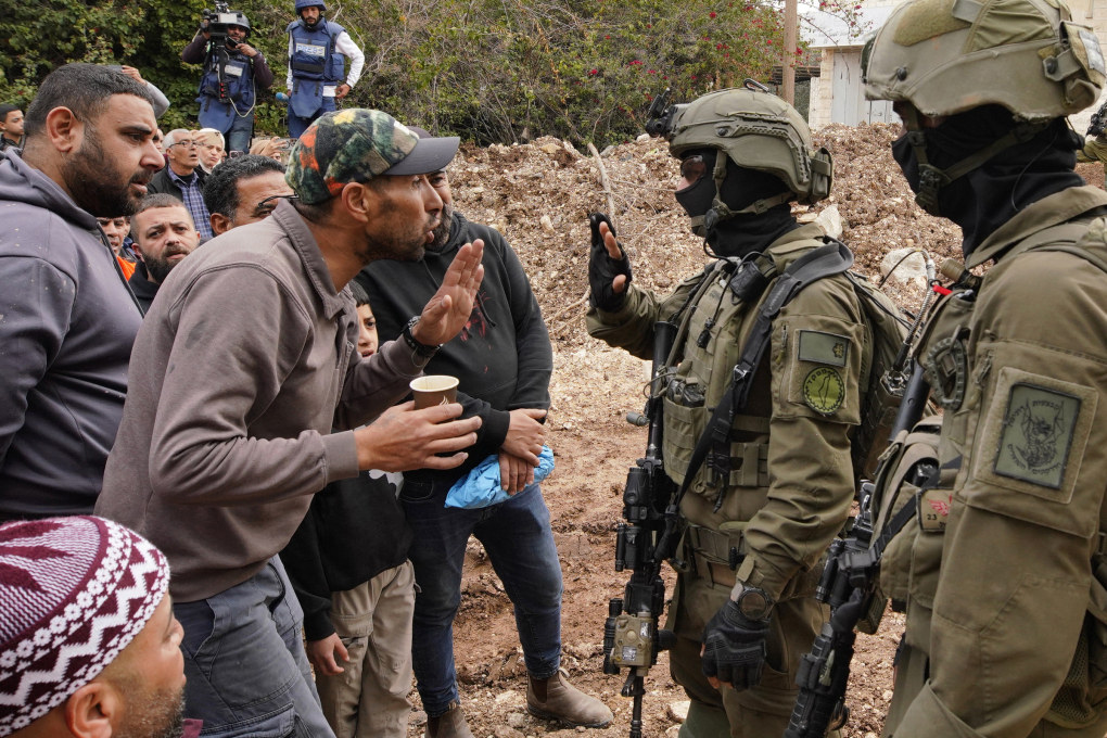 Lính Israel cản người Palestine trở về trại tị nạn ở Jenin, Bờ Tây, ngày 19/2. Ảnh: AFP
