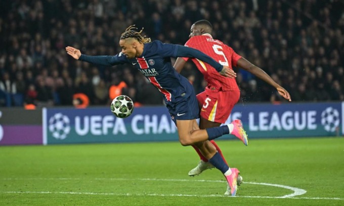 Phút 25, trung vệ William Pacho phất bóng từ phần sân nhà để Bradley Barcola xộc vào vòng cấm Liverpool. Tiền đạo người Pháp có cơ hội đối mặt với Alisson Becker, nhưng bị đồng hương Ibrahima Konate tác động từ phía sau và ngã xuống.