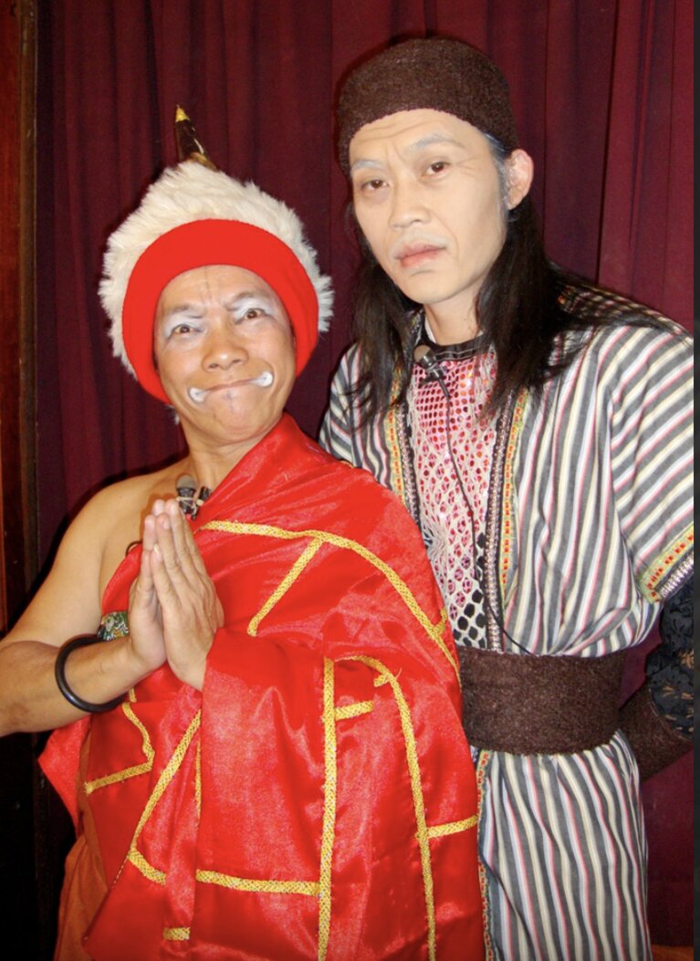 Nghệ sĩ hài Vũ Quang và NSƯT Hoài Linh trong vở "Đêm lạnh chùa hoang"