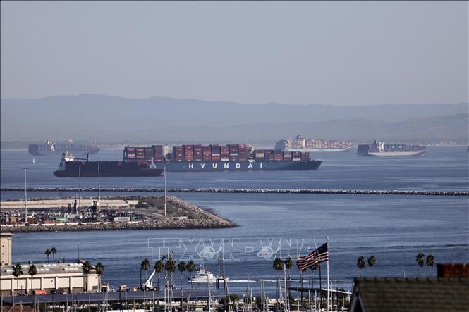 Tàu chở hàng hóa cập cảng ở Los Angeles, California, Mỹ.