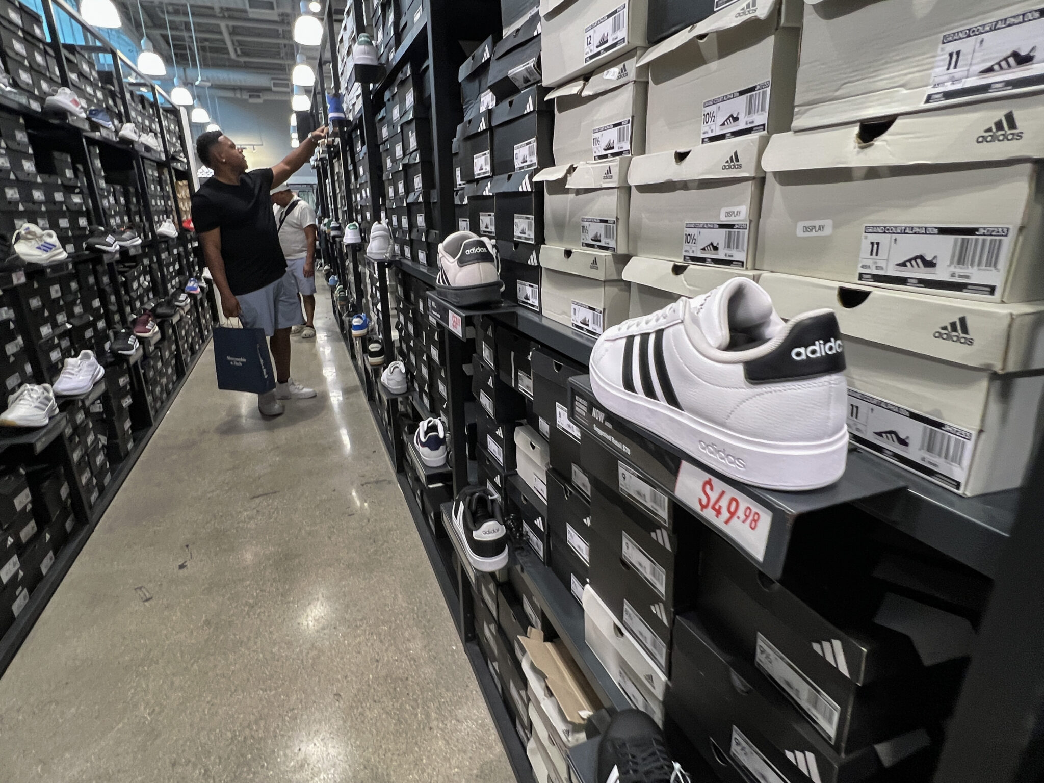 Khách hàng đang lựa chọn giày Adiddas tại một cửa tiệm ở Miami, Florida. Adiddas là một trong những công ty sản xuất giày tại Việt Nam rồi cho xuất cảng sang Mỹ và thế giới. (Ảnh: Joe Raedle/Getty Images)