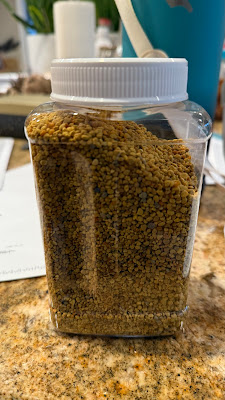 Phấn hoa của ong đem về tổ, mình uống trà bỏ vào một tí, không ngọt. Để sang năm mình nói ông Mễ là nên mua loại này uống với trà hay cà phê vì không ngọt. Ong đậu trên các hoa nên chân dính các phấn hoa. Từ từ thành một hạt nhỏ nên khi bay về tổ thì chúng phải bỏ lại phía ngoài như mình vào nhà, phải bỏ giầy dép ra. Mấy người nuôi ong lấy đem bán. Không ngọt. Nghe nói rất tốt cho cơ thể. Mình xài từ khi mua vườn đến nay, không bị gì cả.