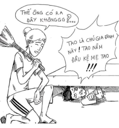 - Sáng sớm vợ vừa thức dậy, tôi đã quát 'Cô ngồi yên đấy lấy điện thoại lướt mạng chơi với con để tôi đi chợ mua đồ ăn sáng về cho cả nhà'. Mụ vợ tôi nghe thế im thin thít ngồi chơi điện thoại không dám cãi nửa lời.