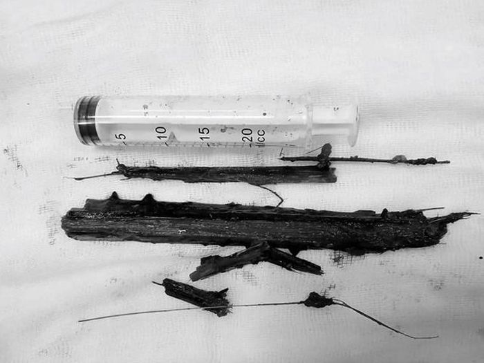 Báo Lao Động đưa tin, các bác sĩ Bệnh viện Đa khoa tỉnh Hà Tĩnh vừa phát hiện, phẫu thuật thành công, lấy ra dị vật là cành cây cọ dài 20cm trong lồng ngực của bệnh nhân Trần Thị H. (95 tuổi, trú tại xã Thanh Bình Thịnh, huyện Đức Thọ, tỉnh Hà Tĩnh).