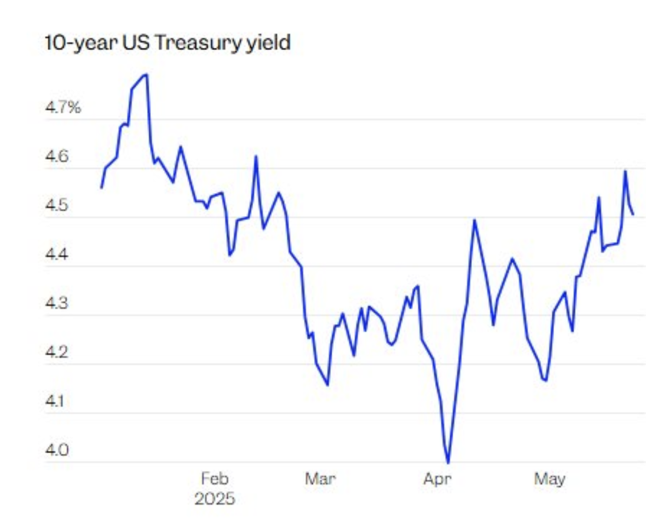 Lợi suất trái phiếu chính phủ Mỹ tăng đặc biệt cao trong những tuần gần đây. Nguyên nhân một phần là do lo ngại về thâm hụt ngân sách của Mỹ và lo ngại thuế quan của Tổng thống Trump sẽ làm giá cả tăng.