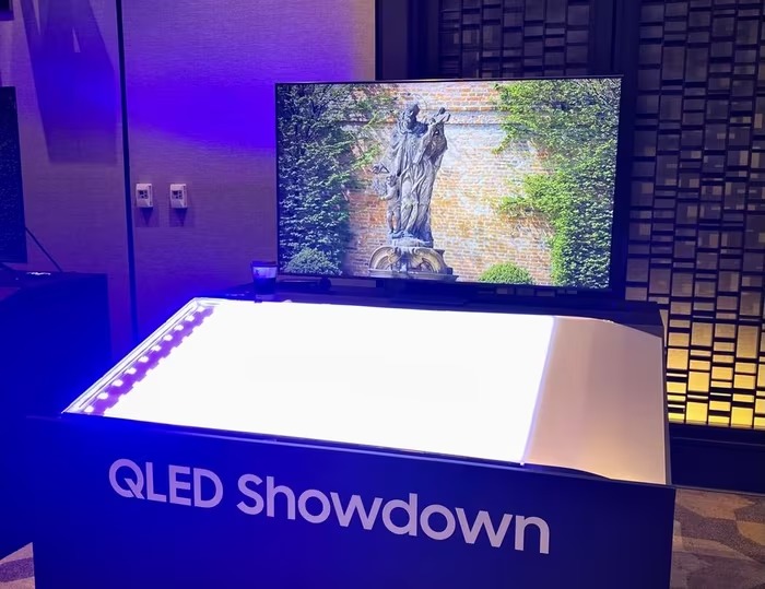 Bục so sánh về chất lượng công nghệ QLED của Samsung, trong một sự kiện vào tháng 5. Ảnh: Nhật Tường.