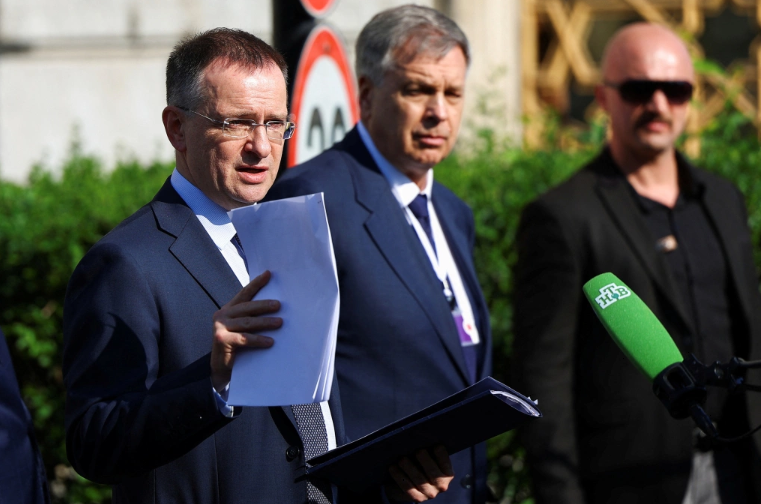 Trưởng đoàn đàm phán Nga Vladimir Medinsky (trái) trả lời báo giới sau cuộc đàm phán với Ukraine ở Istanbul, Thổ Nhĩ Kỳ ngày 2/6. Ảnh: Reuters
