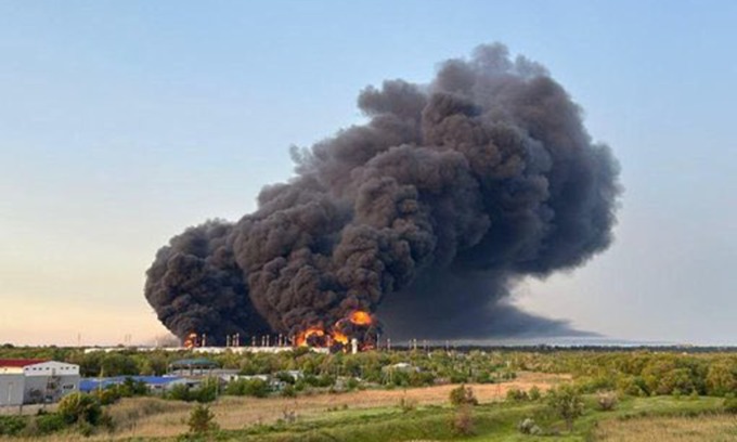 Hình ảnh, video trên mạng xã hội cho thấy vụ hỏa hoạn lớn tại Engels, được cho là tại kho dầu chuyên cung cấp nhiên liệu cho căn cứ ở thành phố.