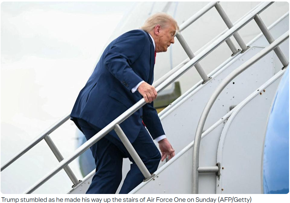 Old  Default Trump vấp bước chân loạng choạng khi bước lên Không lực Một (video)