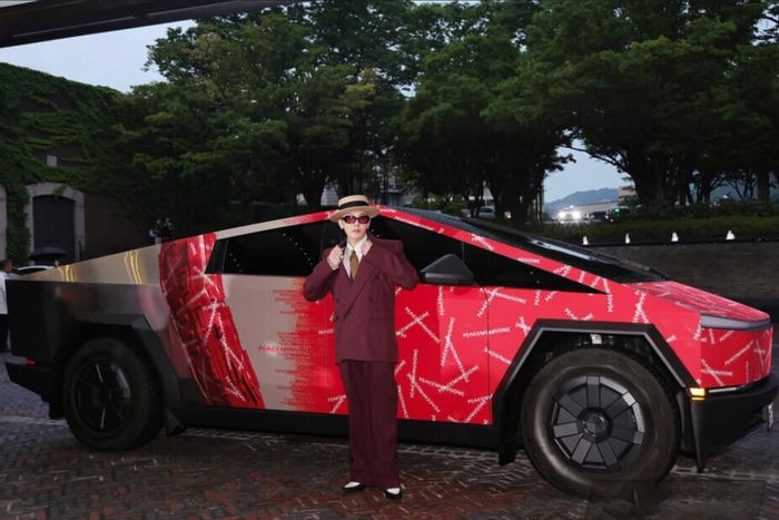 Tại buổi lễ ra mắt hãng đồ uống của mình, Kwon Ji Jong, hay còn được gọi là G-Dragon, đã gây bất ngờ khi xuất hiện bên cạnh chiếc Tesla Cybertruck dán wrap màu đỏ độc đáo.