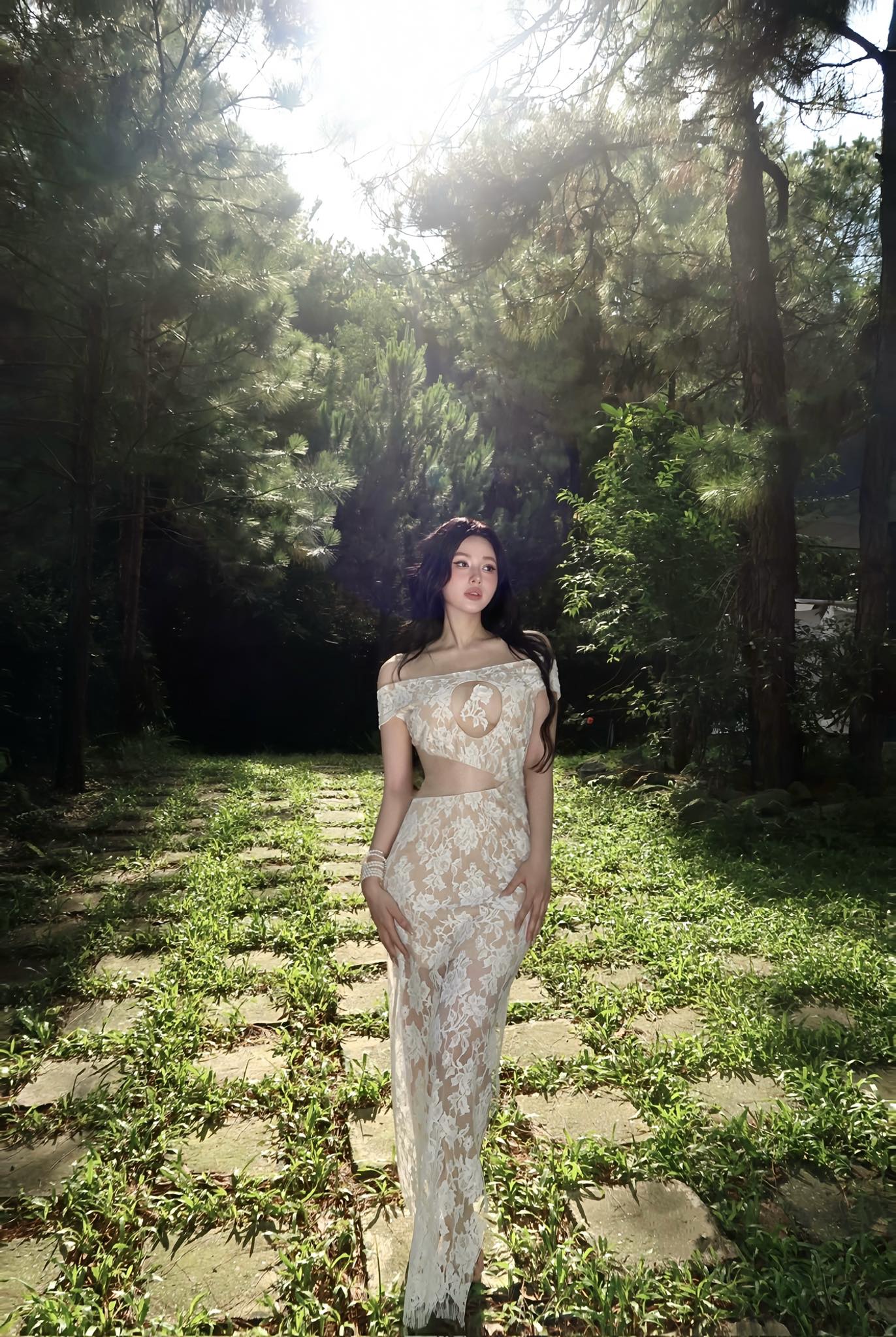 Trong loạt ảnh mới chia sẻ trên trang cá nhân, Tâm Tít diện váy ren trắng ôm sát, khoe vóc dáng săn chắc cùng làn da mịn màng. Gương mặt trang điểm nhẹ, tóc dài buông xõa kết hợp cùng ánh nắng rừng thông tạo nên tổng thể vừa dịu dàng vừa nổi bật. Không ít người ví cô như “tiên nữ giữa rừng” bởi thần thái thanh thoát, khí chất nhẹ nhàng nhưng vẫn cuốn hút.