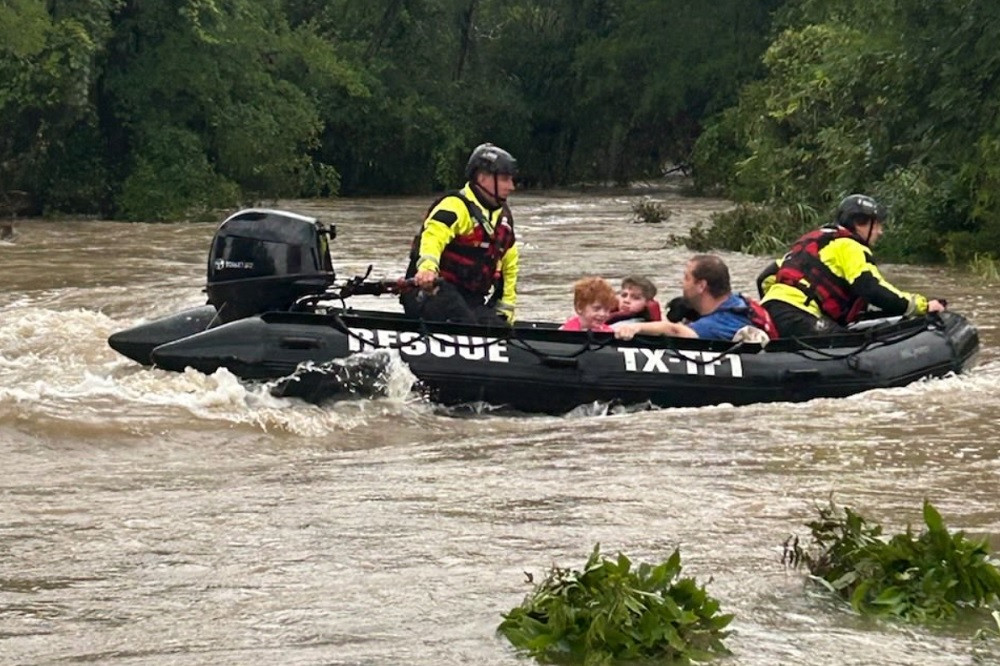Lực lượng cứu hộ Mỹ sơ tán người dân bang Texas khỏi vùng lũ. Ảnh: Thống đốc Texas Greg Abbott