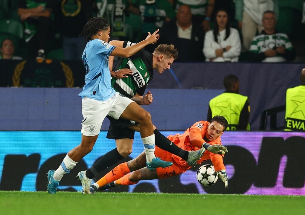 Gyokeres ghi bàn vào lưới Man City trong trận Sporting Lisbon thắng 4-1 ở vòng bảng Champions League tháng 11/2024. Ảnh: Reuters