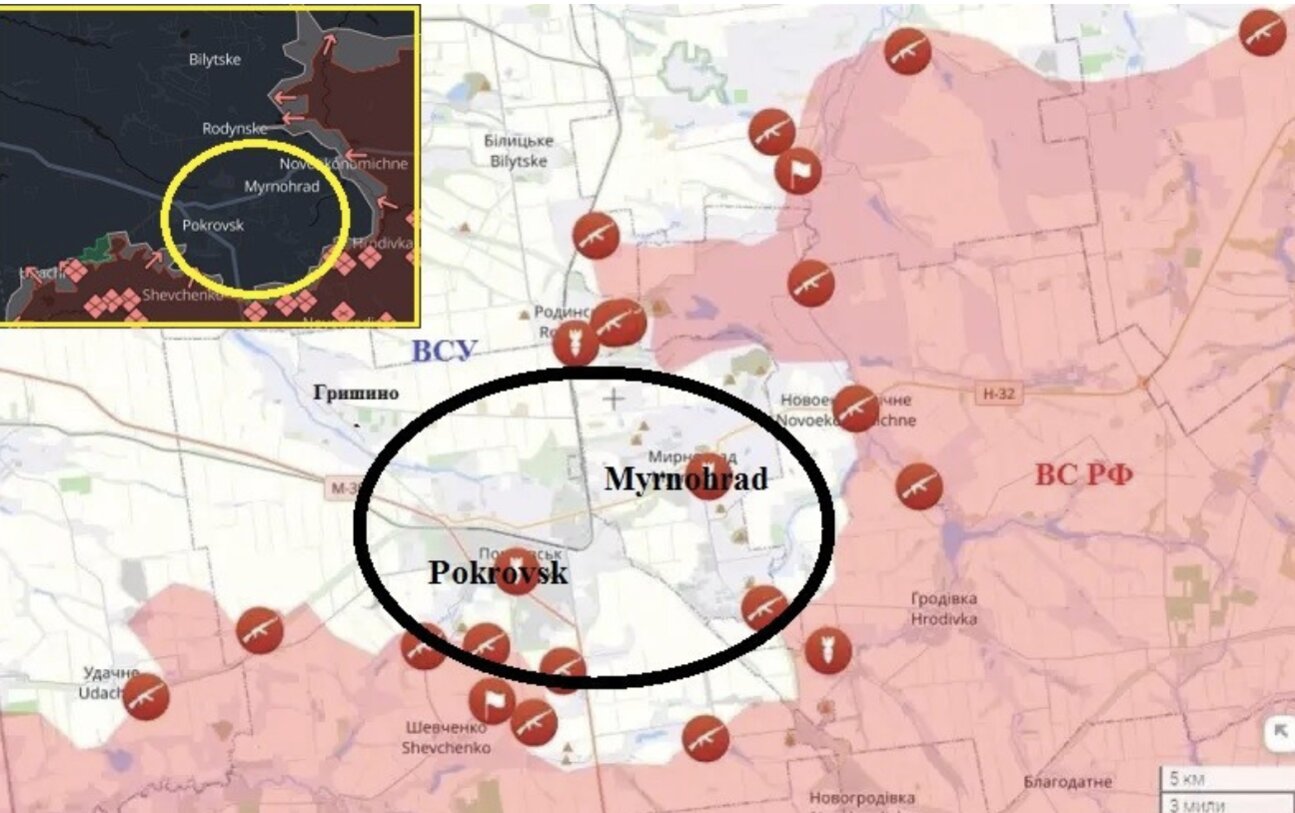 Hiện nay, Quân đội Nga đang triển khai cắt đứt tuyến đường tiếp tế then chốt của cụm quân Lực lượng Vũ trang Ukraine tại khu vực Pokrovsk-Mirnograd. Các đơn vị máy bay không người lái Nga đã tập trung lực lượng theo hướng Grishino, tuyến đường chính để tiếp tế cho lực lượng dự bị và sơ tán thương binh.