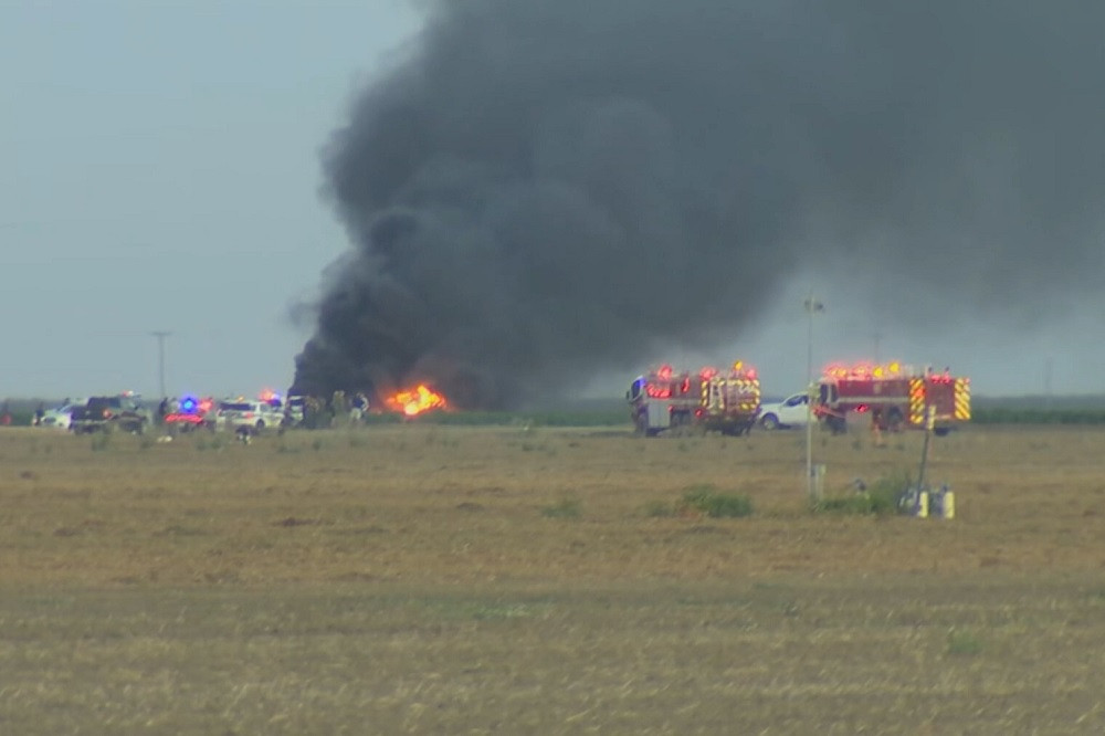 Theo video được các kênh truyền thông Mỹ công bố, lửa lớn và cột khói đen bốc lên từ hiện trường rơi máy bay bên trong một nông trường gần NAS Lemoore. Được biết, vị trí máy bay rơi cách thành phố Fresno, Mỹ khoảng 65km về hướng tây nam.