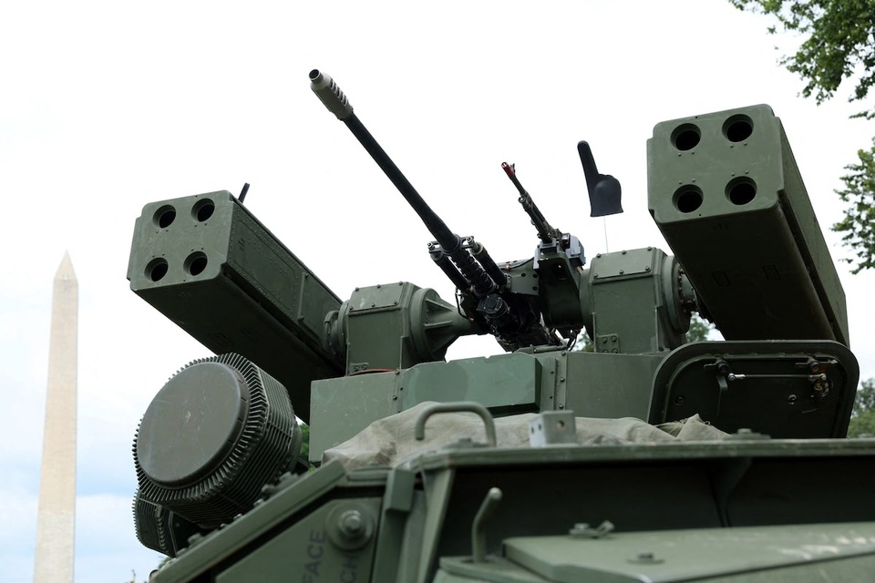 Xe bọc thép Stryker của Mỹ tham gia cuộc diễu hành quân sự kỷ niệm 250 năm thành lập Quân đội Mỹ tại Washington, D.C., ngày 14/6. Ảnh: Reuters