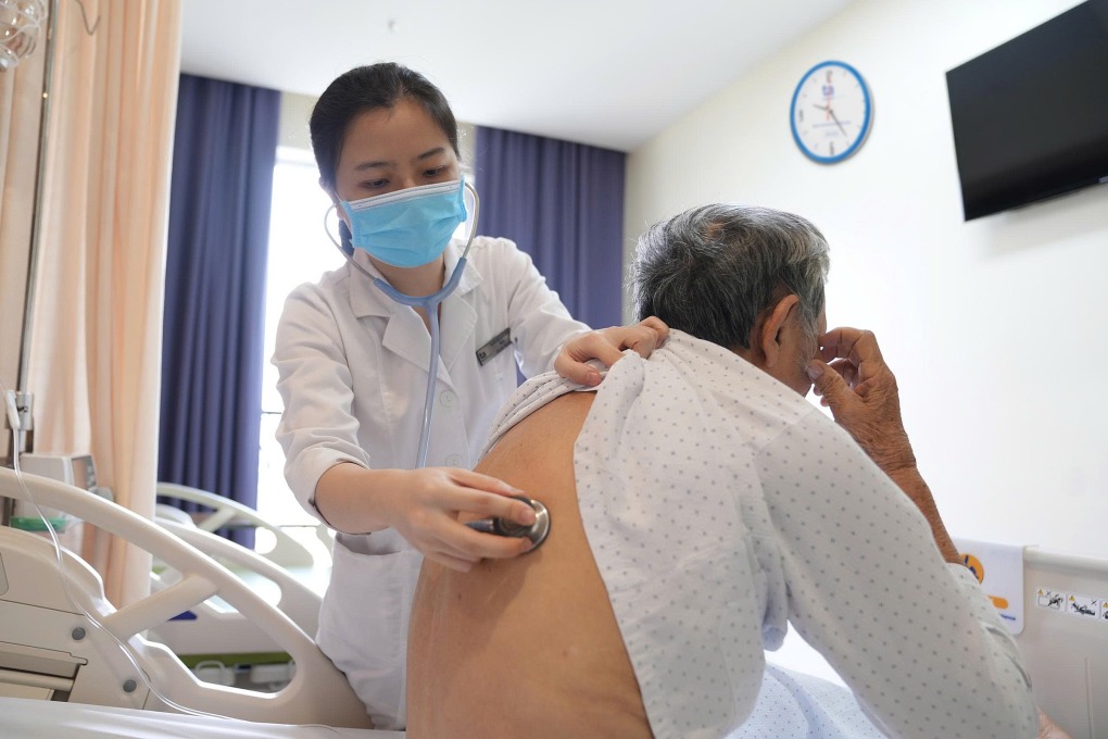 Bác sĩ khoa Nội tổng hợp khám cho một người bệnh. Ảnh: Bệnh viện Đa khoa Tâm Anh
