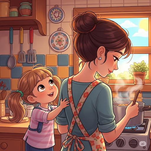 Đi làm về, người mẹ thấy con gái nhỏ 5 tuổi cứ đi quanh mình ba bốn vòng, ngắm nghía từ mọi phía. Bà mẹ ngạc nhiên hỏi: