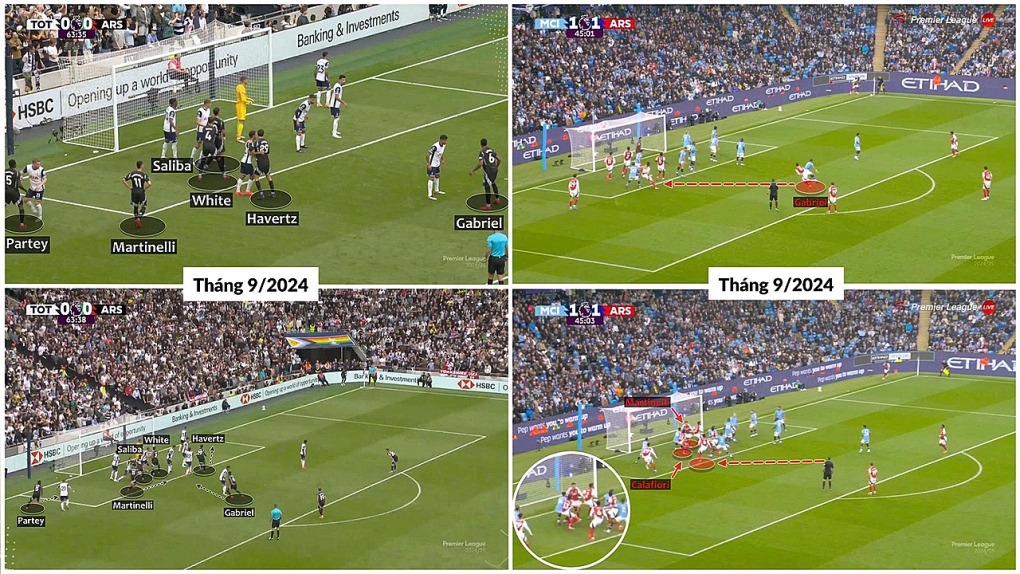 Bất kể thay đổi cách dàn xếp nhân sự tấn công bóng cố định thế nào, các học trò của Arteta luôn có cách để cài người, ngăn cản pha di chuyển của đối thủ bên trong vùng cấm, nhất là ngay trước khung thành. Ở bàn thắng của Calafiori, nguồn cơn tranh cãi là tác động của trung vệ Saliba lên Bayindir, hệ quả thủ thành người Thổ Nhĩ Kỳ không thể kiểm soát được không gian trước mặt lẫn quả bóng khi nó được tạt vào.