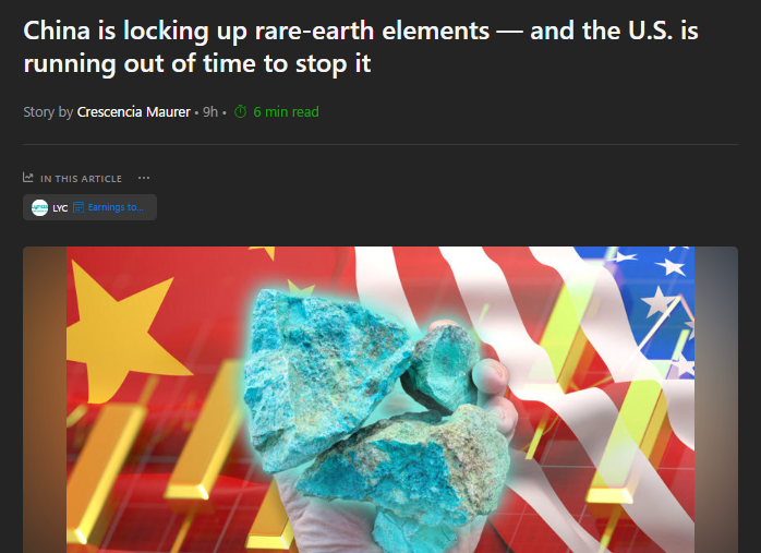 Trung Quốc sẽ vẫn duy trì vị thế thống trị chuỗi cung ứng khoáng sản đất hiếm trong ngắn hạn đến trung hạn, bất chấp những nỗ lực phát triển khoáng sản đất hiếm ở những nơi khác. Mặc dù Hoa Kỳ đã tăng cường đáng kể hoạt động khai thác khoáng sản đất hiếm, nhưng họ vẫn chưa giải quyết được những điểm yếu trong việc tinh chế hoặc sản xuất linh kiện. Thời gian để xây dựng chuỗi cung ứng của Hoa Kỳ vẫn ở mức 15-20 năm, và điều này không bị rút ngắn bởi thuế quan, thỏa thuận khoáng sản quan trọng với Ukraine, hay một loạt sắc lệnh hành pháp của Nhà Trắng tập trung vào sản xuất năng lượng và khoáng sản — bao gồm cả sắc lệnh tuyên bố tình trạng khẩn cấp năng lượng quốc gia.