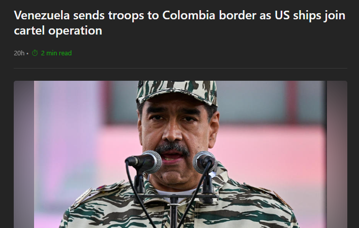 Venezuela đã tuyên bố triển khai 15.000 quân đến biên giới với Colombia để chống buôn bán ma túy, trong bối cảnh Hoa Kỳ được cho là đã điều thêm hai tàu hải quân đến Nam Caribe trong khuôn khổ chiến dịch chống lại các băng đảng ma túy Mỹ Latinh.