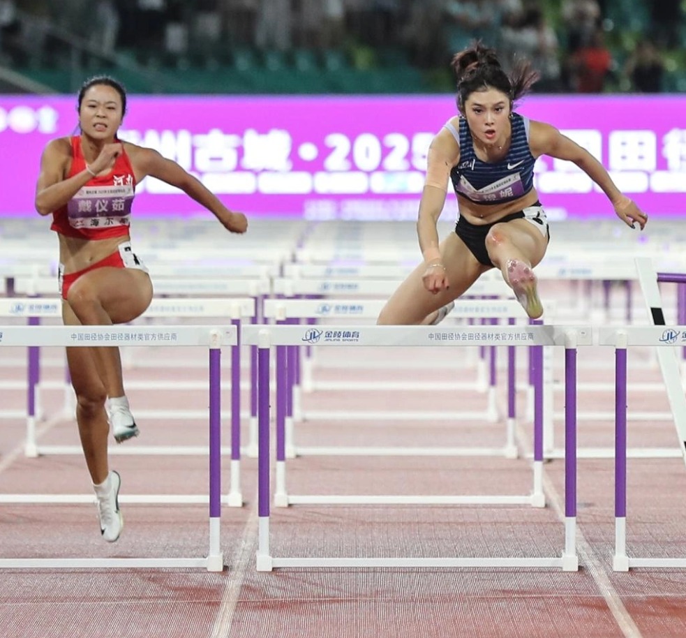 Wu Yanni (phải) thi đấu nội dung 100m rào nữ tại Giải vô địch điền kinh Trung Quốc năm 2025 ngày 4/8. Ảnh: Sports China