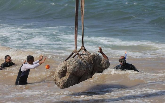 Trong số những hiện vật được trục vớt có một bức tượng nhân sư bằng đá thạch anh mang khắc hình ảnh của pharaoh Ramesses II nổi tiếng Ai Cập.