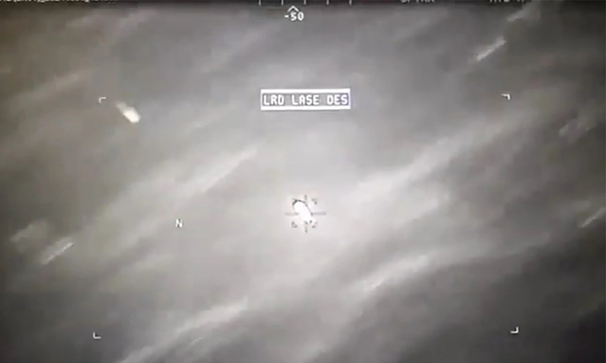 Giao diện điều khiển trong video có dòng chữ "LRD LASE DES", thể hiện chiếc MQ-9 vừa ghi hình vừa làm nhiệm vụ chiếu tia laser chỉ thị mục tiêu cho UAV còn lại công kích. Quả đạn AGM-114 lao về phía vật thể lạ rồi va vào mục tiêu, khiến một số mảnh vỡ văng ra. Tên lửa không phát nổ và bay tiếp theo quán tính, trong khi vật thể lạ tiếp tục di chuyển sau cú va chạm.
