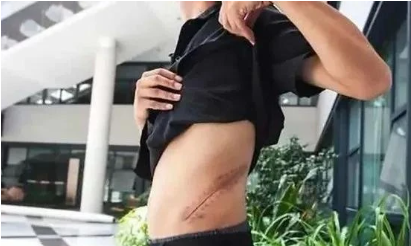 Vết mổ lấy thận của chàng trai.