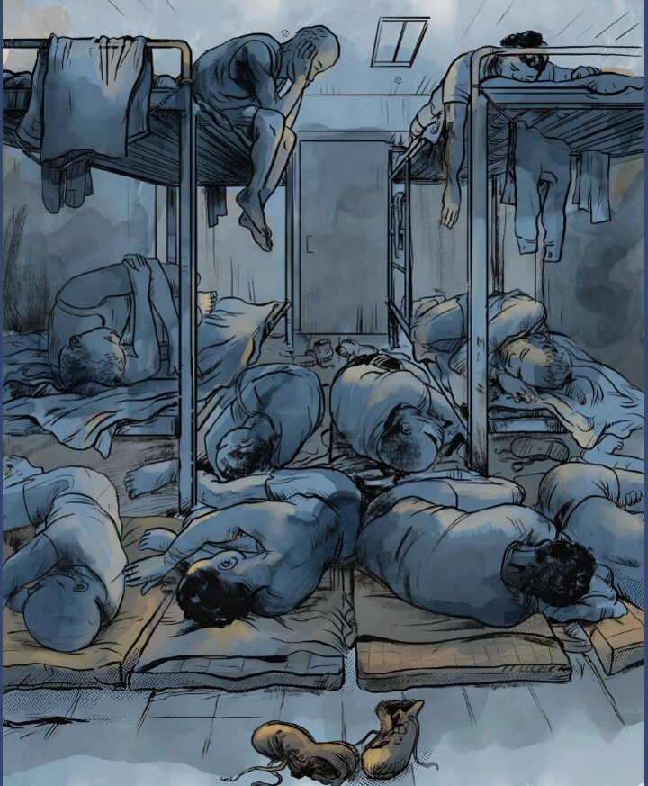 Điều kiện ở đây tồi tệ, theo lời nhiều người. Trại có lính dân quân vũ trang canh gác, thức ăn khan hiếm, vệ sinh kém, phụ nữ không có băng vệ sinh. “Chúng tôi chỉ được hai bữa mỗi ngày… Thức ăn không đủ”, Oly nhắn cho Reuters từ trại.