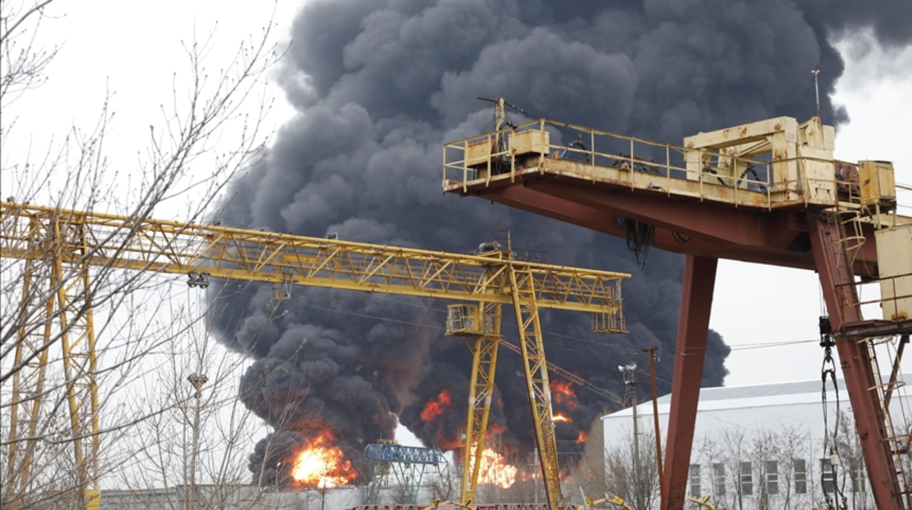 Cuộc tấn công nhằm vào một nhà máy lọc dầu của Nga ở gần Volvograd năm 2024. Ảnh: Anadolu.