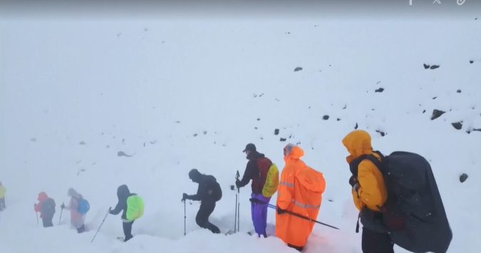 Cơn bão tuyết kèm mưa lớn bắt đầu từ đêm 4/10, kéo dài suốt ngày hôm sau, khiến các lối đi bị chặn và hàng loạt lều trại bị vùi lấp. Một số người vội vã xuống núi trước khi đường bị cắt cho biết nhiều khu lều đã bị tuyết nghiền nát.