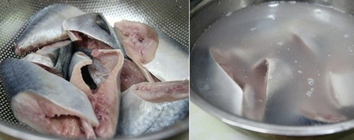 Sau khi ngâm, vớt cá ra, rửa lại bằng nước lạnh và để ráo. Lúc này, cá đã gần như mất mùi tanh, thịt săn chắc, trắng hồng và thơm hơn hẳn so với trước.