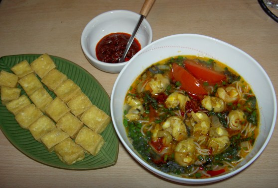 _Cà chua vài quả nhỏ vừa, bổ miếng cau, để thả nồi nước dùng, thêm khoảng hai quả nữa thì bỏ hạt, thái nhỏ để xào lấy mầu