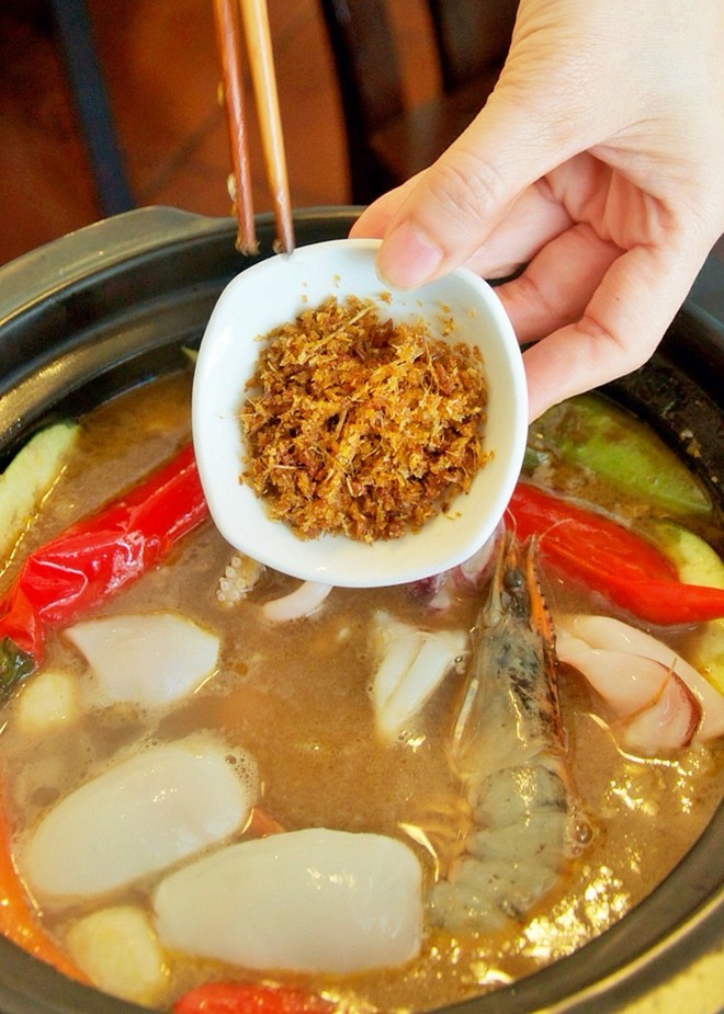 Sả và ớt là hai gia vị không thể thiếu của mắm kho. Bạn có thể cho chúng vào khi nấu hay khi thưởng thức đều được. Ảnh: Lẩu mắm Quán Vy