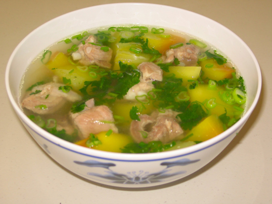 Canh đu đủ nấu sườn: Đu đủ 1 quả, lạc 150g, sườn 500g, táo tàu 9 quả, gia vị vừa đủ.