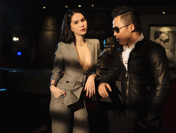 Ngọc Trinh và ông bầu thực hiện bộ ảnh thời trang ấn tượng. Cô phanh áo vest không nội y, khoe vòng một lấp ló gợi cảm. Dù đồng hành cùng nhau rất lâu nhưng đây cũng là bộ ảnh đầu tiên Vũ Khắc Tiệp chụp ảnh cùng Ngọc Trinh với vai trò là người mẫu.